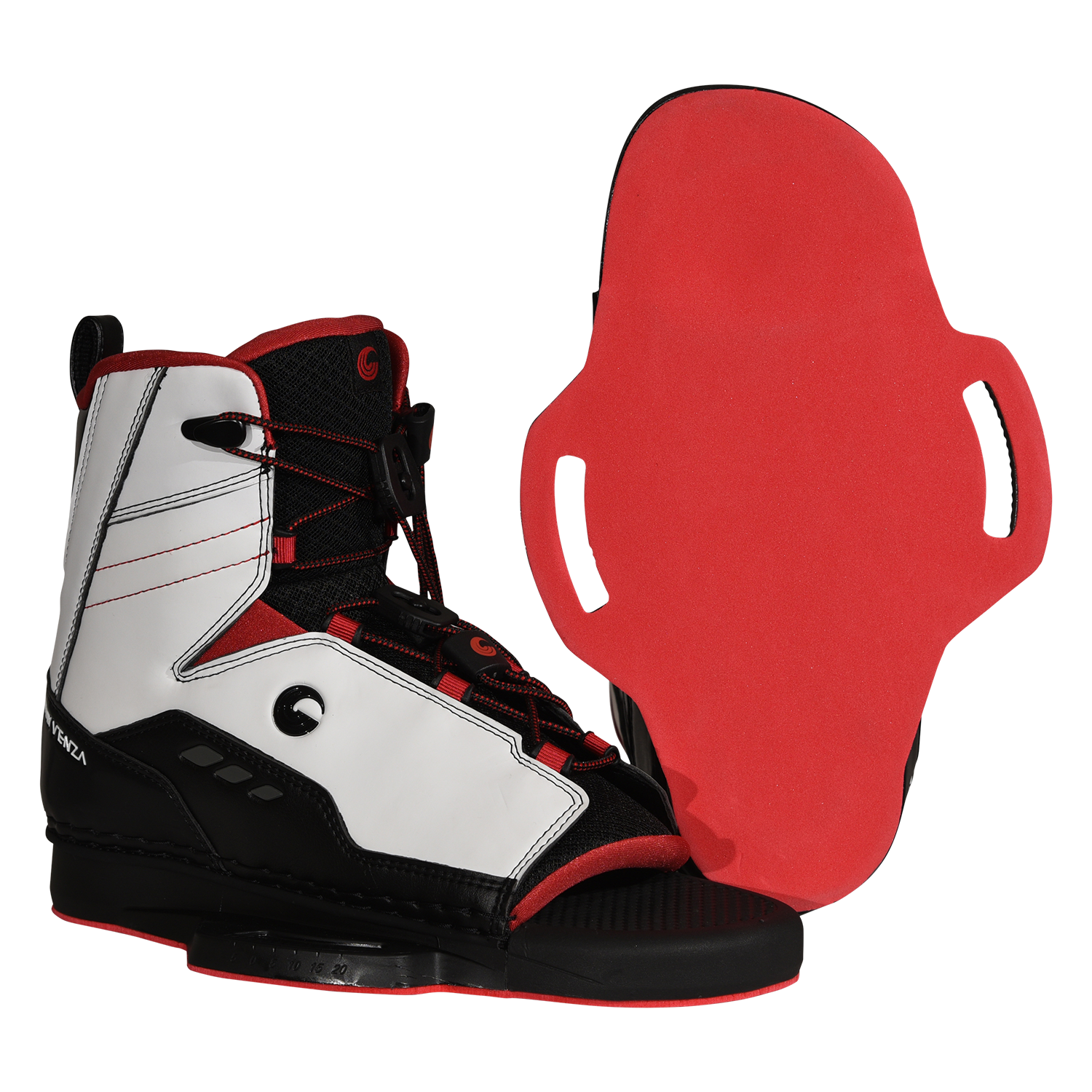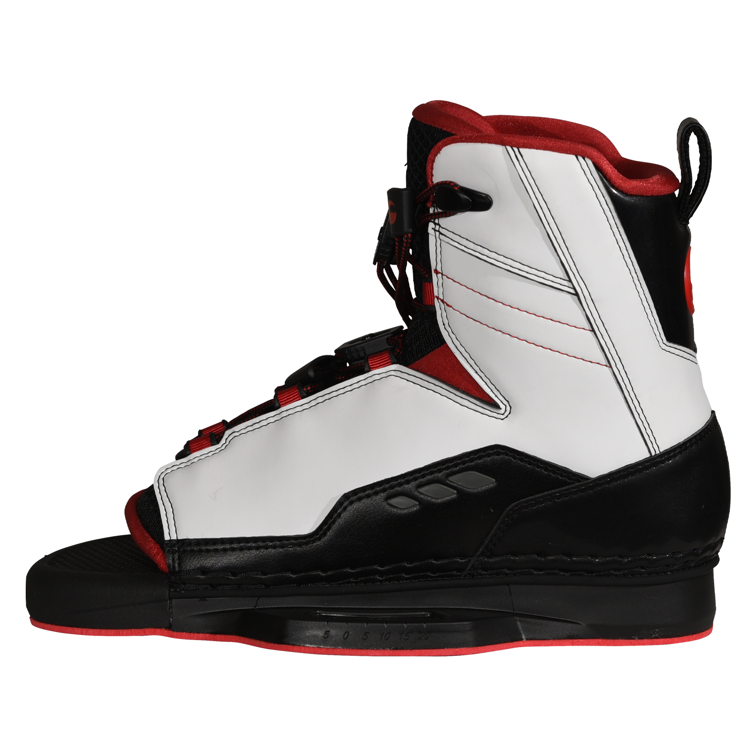 The Venza matches the step-above performance of the Pure when compared to the competition. Designed to fit a wide variety of foot sizes these are the perfect bindings to have on any boat for friends and family to ride. New upper lace loop for easier entry and more customizable fit. New cut over the top of the foot for a more even pressure distribution as the laces are tightened. The high wrap outer boot offers standalone response and performance while the soft Lycra liner is comfortable for riders at any skill level.